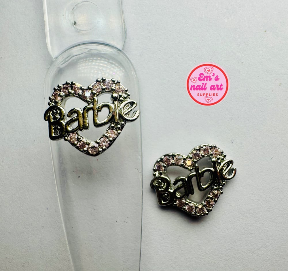 Stunning 2pc Barbie heart charms with light baby pink stones around the heart