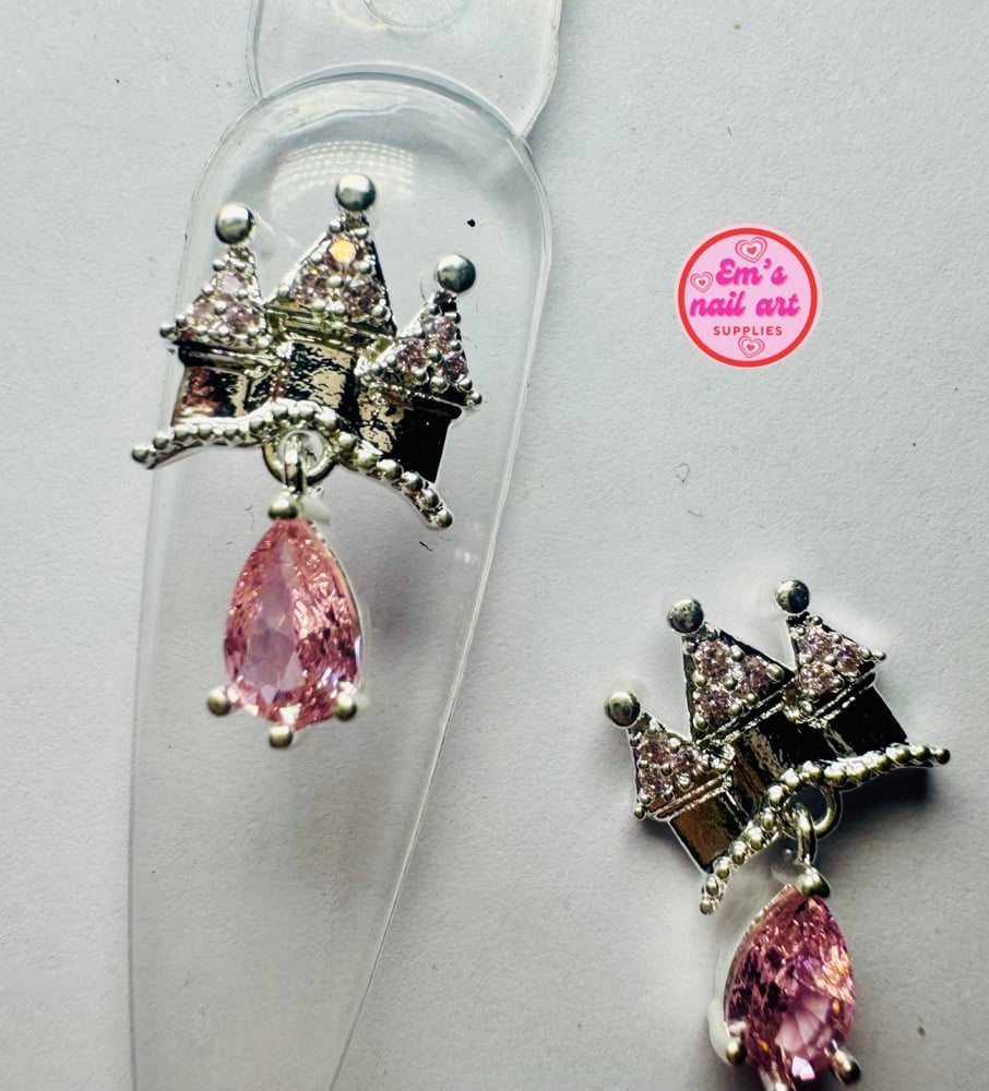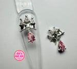 Stunning 2pc castle style charm with dangle pink stone and white stones in the roof