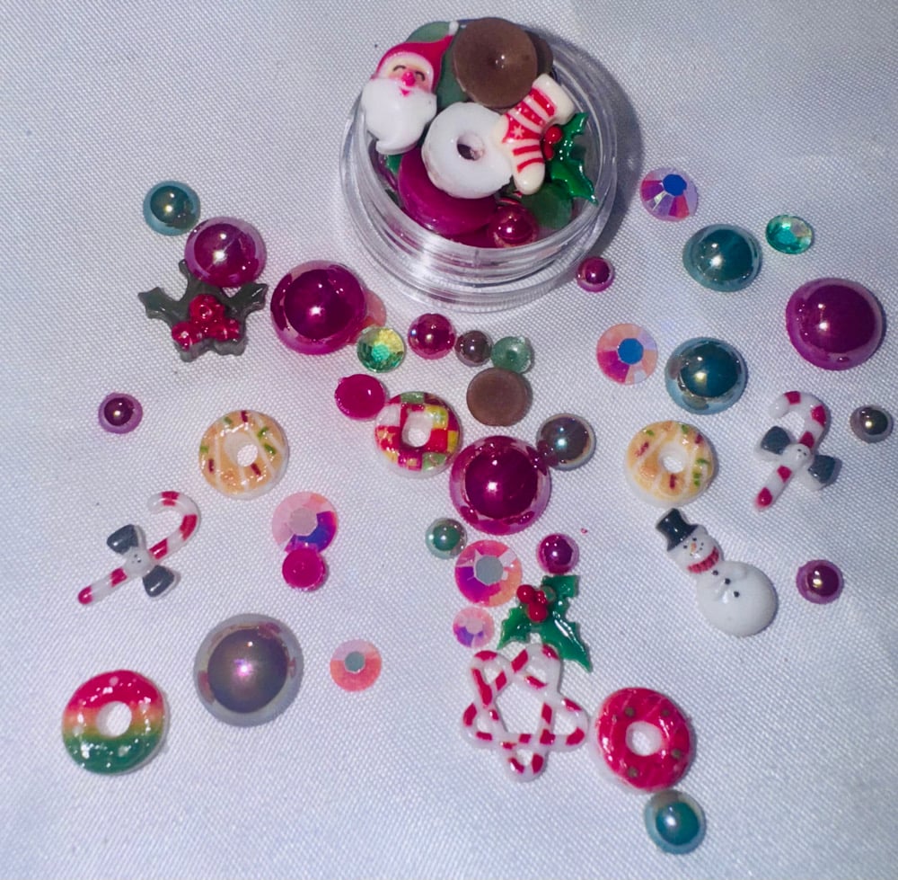 Christmas treats mix with Christmas donuts candy canes charms. Pearl mix and so much more
