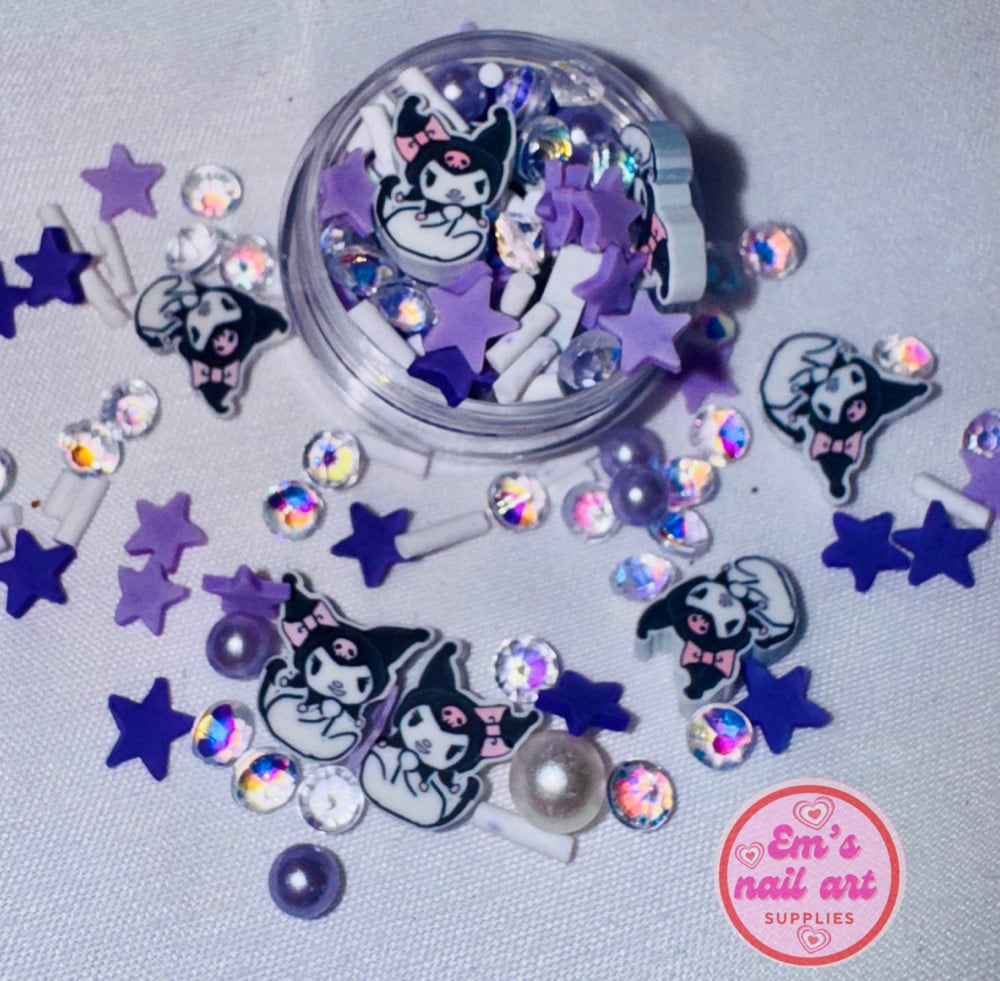 Kuromi mix Fimo slices. Stars sprinkles and more