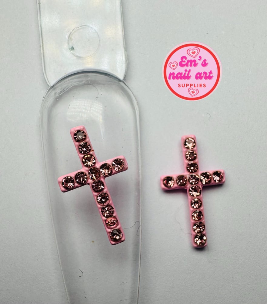 2pc pink crosses with stones center